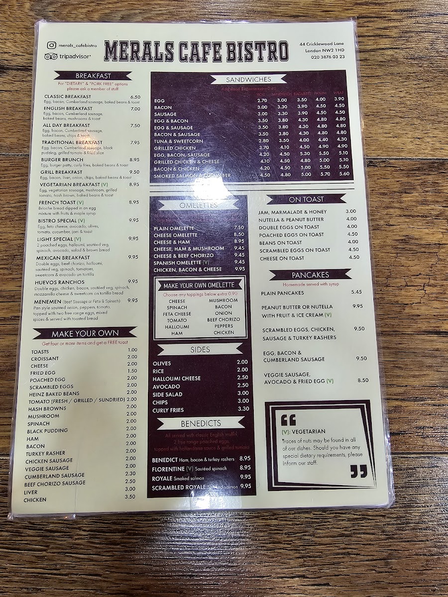 Meral’s Cafe Bistro, located at 44 Cricklewood Ln, London, offers an enticing and diverse menu that caters to a wide range of tastes and preferences. Whether you're stopping by for breakfast, lunch, or dinner, the menu is designed to satisfy both light and hearty appetites.